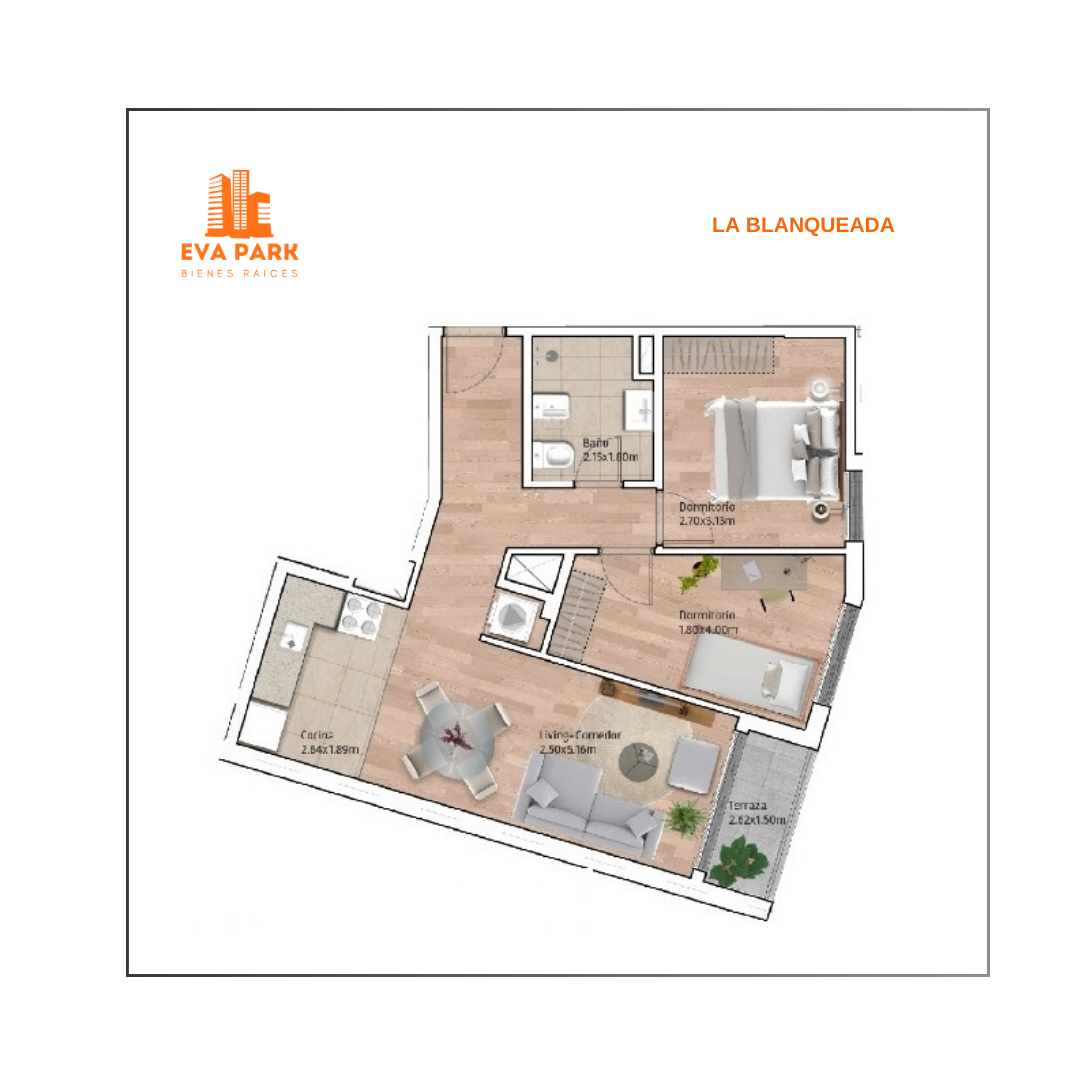 El apartamento está compuesto por dos acogedores dormitorios, un baño, cocina integrada al living/comedor con balcón. Esta propiedad se presenta como una excelente opción para quienes buscan un hogar en una ubicación estratégica.